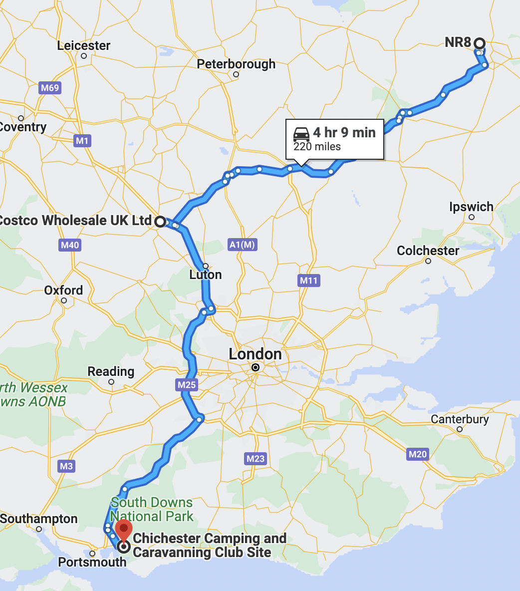 We arrived in Chichester Camping and Caravan Club park around 4pm. First setup, luckily a lovely fellow camper next door helped with the electric hookup making sure I do things in the right order. Within a few minutes we were all go, the electric was on, phew.